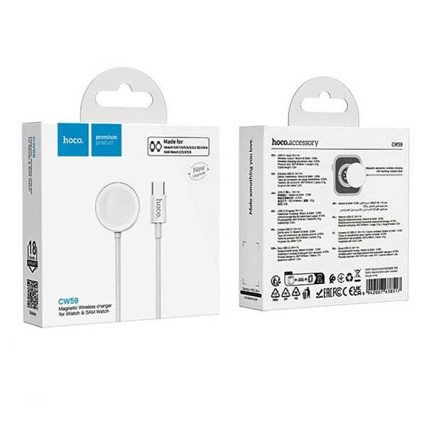 Experience convenient, fast, and secure charging with the Hoco CW59 Wireless Charger. Designed specifically for smartwatches, this all-in-one charger effortlessly powers up your device while ensuring its safety during the process. Whether you own an iWatch Series (Ultra/9/8/7/SE/SE2/5/4/3/2/1) or a compatible Samsung Galaxy Watch model, this versatile charger is here to streamline your daily routine. Its magnetic charging dock delivers a stable and user-friendly experience every time you need a power boost.