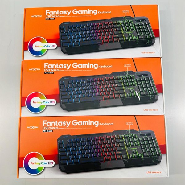 The Moxom MX-KB08 Gaming Keyboard is everything you need to advance your gaming experience. Designed with gamers in mind, it’s a perfect blend of aesthetics and functionality. With vibrant rainbow-colored LED lighting that can be controlled directly from the keyboard, this product ensures your gaming sessions are more dynamic and immersive.